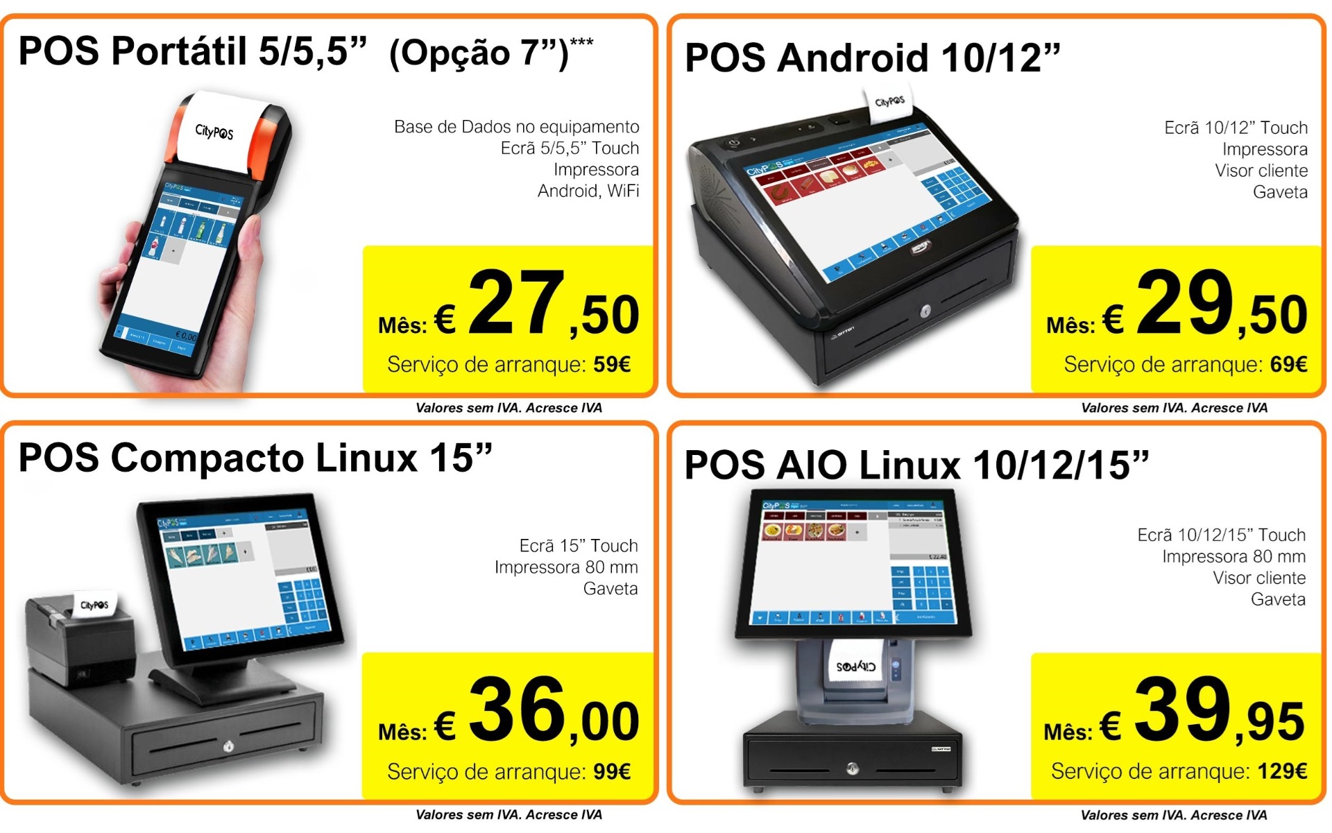 Pode alugar POS e POS portáteis, completos, com Hardware, Software e Serviços, a partir de 3 meses.