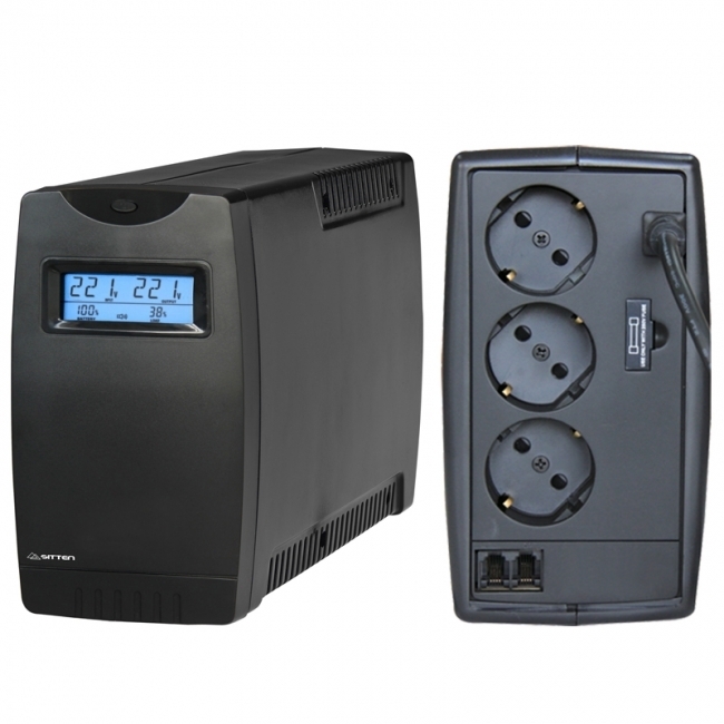 UPS Interativa com AVR, 800VA, 480W, com 3 tomadas Schuko e LCD